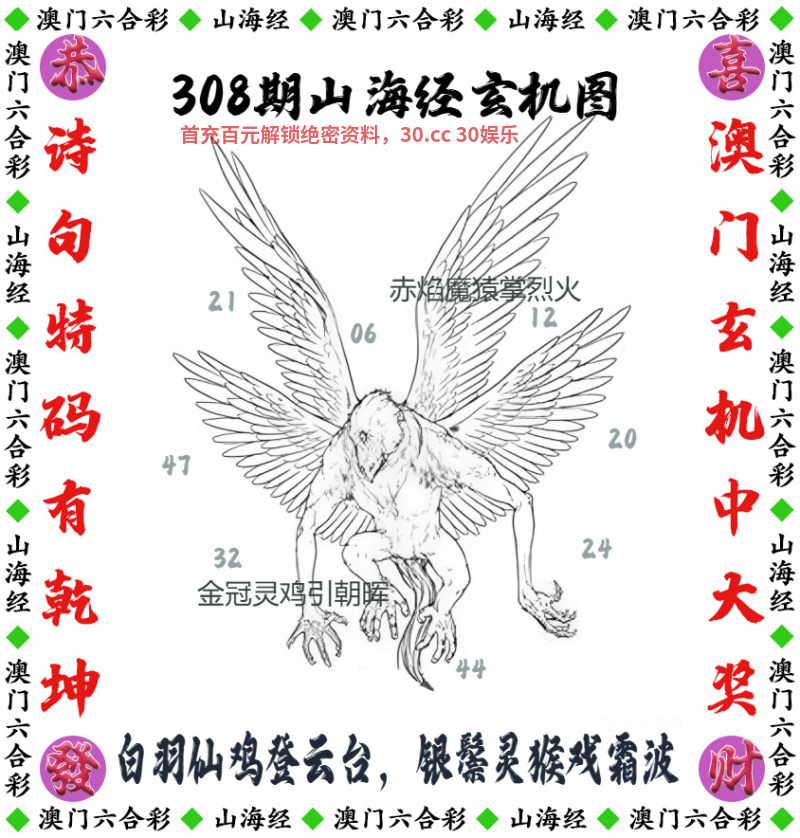 解释:赤焰魔猿掌烈火,金冠灵鸡引朝晖解狗马鸡